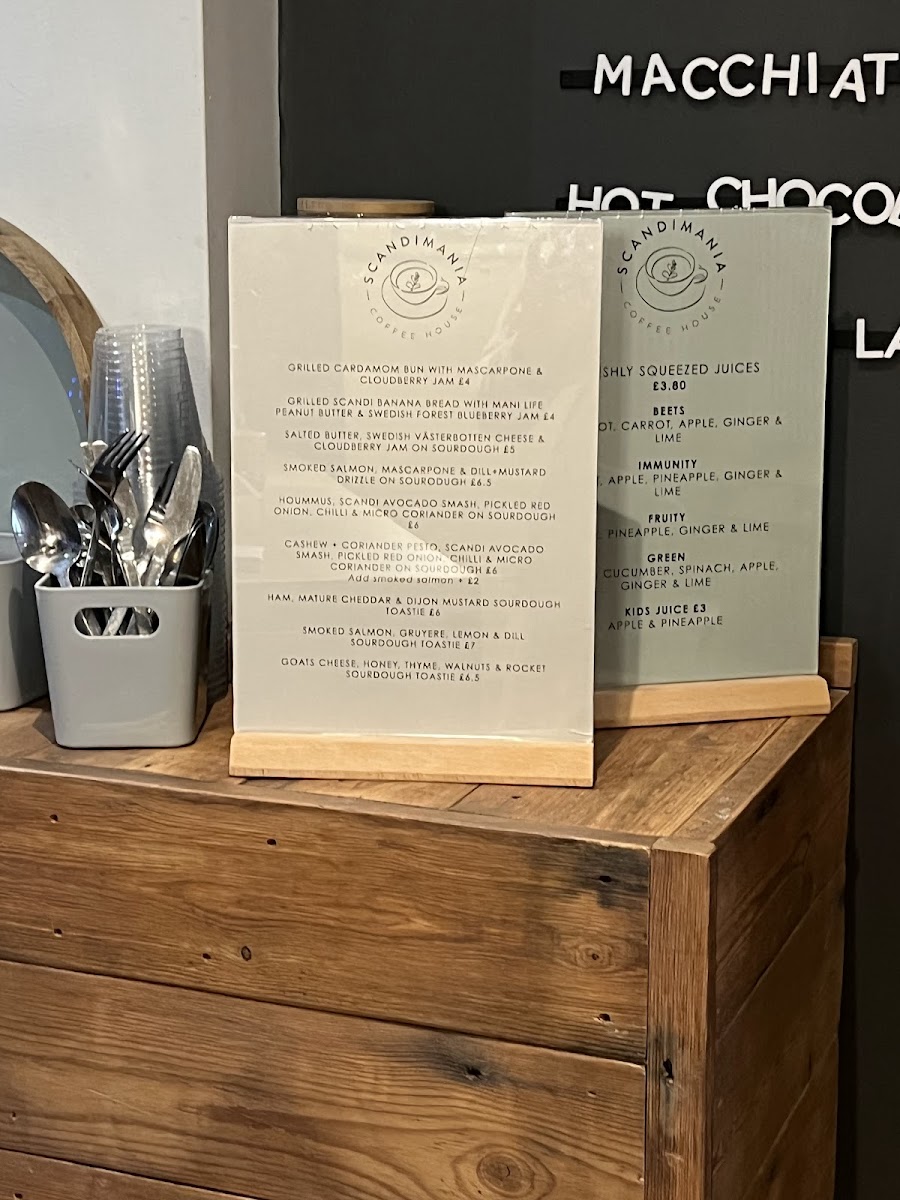 The menu at Scandimania Coffee House offers a delightful blend of Scandinavian-inspired flavors, perfect for any time of the day. One of the highlights is the Cortado, a rich espresso drink that perfectly balances coffee and milk, ideal for those looking for a strong yet smooth beverage. For a more substantial bite, the Smashed Avocado and Cashew Pesto on Sourdough Toast is a must-try. The creamy avocado combined with the earthy cashew pesto on crisp sourdough creates a satisfying and flavorful dish.